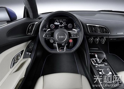 外觀方面,奧迪新一代R8采用最新的六邊形家族式進氣格柵,大燈線條更加利落,前保險杠兩側的進氣口裝飾則增添了層次感,前后大燈使用了全新的光源(前大燈標配LED,可選裝激光大燈),整個前臉變得更加兇悍。此外,新一代R8還增加了V10 plus版本,其采用了固定式碳纖維復合材料后擾流板。 奧迪新一代R8在車身上使用了更多的鋁和碳纖維復合材料,重量相比上代車型最多降低了50kg,同時鋁制車身的抗扭強度則提高了40%。此外,新車還標配碳纖維陶瓷剎車系統。 內飾部分,奧迪新一代R8中控臺樣式更加簡潔,同時新一代R8還配備了液晶顯示儀表盤。此外,新一代R8多功能方向盤還集成動力方面,新一代R8將僅搭載5.2L FSI V10發動機,但有兩種輸出,低攻率版最大功率輸出540馬力(397kW),峰值扭矩540N·m。高功率版本(V10 plus)610馬力(449kW),峰值扭矩為560N·m。傳動系統新車匹配升級的7速S tronic變速箱。新車的0-100km/h的加速為3.5秒,極速為320km/h。而高功率V10 plus的0-100km/h加速為3.2秒,極速為330km/h。