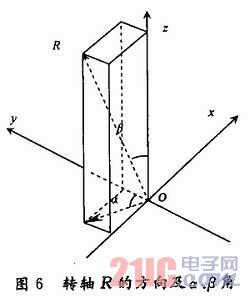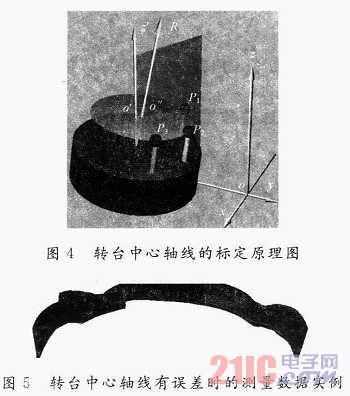 式中:P1,P2,P3旋轉到與xOy平行的平面上就可以很容易求出圓心,然后將圓心再依次繞x軸、z軸反向旋轉β和α,即得到O”,轉臺中心軸線的方向和位置得到確定。