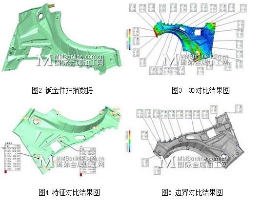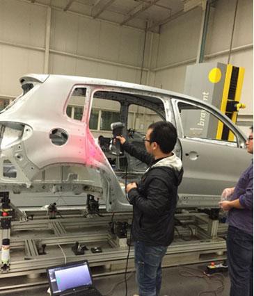 OFweek激光網(wǎng)訊:如今,激烈的市場(chǎng)競(jìng)爭(zhēng)促使汽車廠家都在加緊新車型的開發(fā),以搶占市場(chǎng)先機(jī),贏得豐厚利潤(rùn)。由于發(fā)動(dòng)機(jī)、底盤設(shè)計(jì)制造技術(shù)基本成熟,新車型主要體現(xiàn)在車身造型及電子設(shè)備上。在轎車新品種的研發(fā)過(guò)程中,車身鈑金件具有形狀復(fù)雜、結(jié)構(gòu)尺寸大、精度高、表面質(zhì)量要求嚴(yán)格等特點(diǎn)。據(jù)統(tǒng)計(jì)目前在一種新車型開發(fā)中有40%的設(shè)計(jì)師與工程師在從事與車身鈑金件相關(guān)的工作。鈑金件質(zhì)量的好壞決定了新車型開發(fā)的成敗。這無(wú)疑對(duì)鈑金件的檢測(cè)提出了全新的要求。而傳統(tǒng)的檢具、三坐標(biāo)測(cè)量機(jī),由于自身的缺陷不能對(duì)鈑金件空間曲面形狀作出全面評(píng)價(jià),且檢測(cè)效率低!也不能完全滿足大規(guī)模汽車生產(chǎn)的檢測(cè)需要,如何快速、精確、方便地對(duì)鈑金件進(jìn)行檢測(cè)!已成為整車廠必須面對(duì)的問(wèn)題。 加拿大Creaform 公司研發(fā)的Handyscan 3D 手持三維激光掃描儀為上述問(wèn)題的解決提供了全新的方法。它獨(dú)創(chuàng)的自定位技術(shù)實(shí)現(xiàn)了掃描過(guò)程中工件靈活移動(dòng),確保掃描不留死角,而且它具有掃描精度高(最高可達(dá)0.04mm)、獲取點(diǎn)云速度快、易于操作、不受工件大小限制等特點(diǎn),為汽車新品研發(fā)、零部件質(zhì)量控制及整車裝配的順利進(jìn)行提供了可靠保證。 目前Handyscan 3D 手持三維激光掃描儀在汽車領(lǐng)域的應(yīng)用主要是:一,汽車零部件型面、邊界、孔位等迅速、直觀、全面的檢測(cè);二,汽車零部件、整車的逆向設(shè)計(jì)。本文以某在研電動(dòng)車的左側(cè)圍內(nèi)板焊接總成件為研究對(duì)象,重點(diǎn)闡述Handyscan 3D 手持三維激光掃描儀在汽車鈑金件質(zhì)量分析中的應(yīng)用。