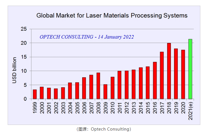 市場研究公司Optech Consulting的一項最新調研報告顯示,盡管受到新冠疫情的持續影響,去年全球工業激光系統市場仍然顯示出強勁的增長勢頭。