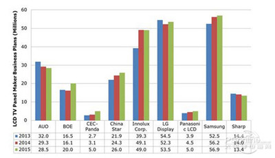在最近的一兩年,我們可以看到經過幾個重大的變化之后液晶電視的發展到了一個瓶頸的位置,無論從技術上,還是從市場上,發展速度都大不如前,這可以從各大廠商的銷售量增長曲線上可以看出。根據DisplaySearch LCD TV液晶電視價值鏈&分析季度報告和大尺寸TFT(薄膜晶體管)面板出貨量季度報告顯示,電視面板廠商2015年的出貨目標為2億5,700萬片,僅比2014年的2億4,900萬片增長3% 。